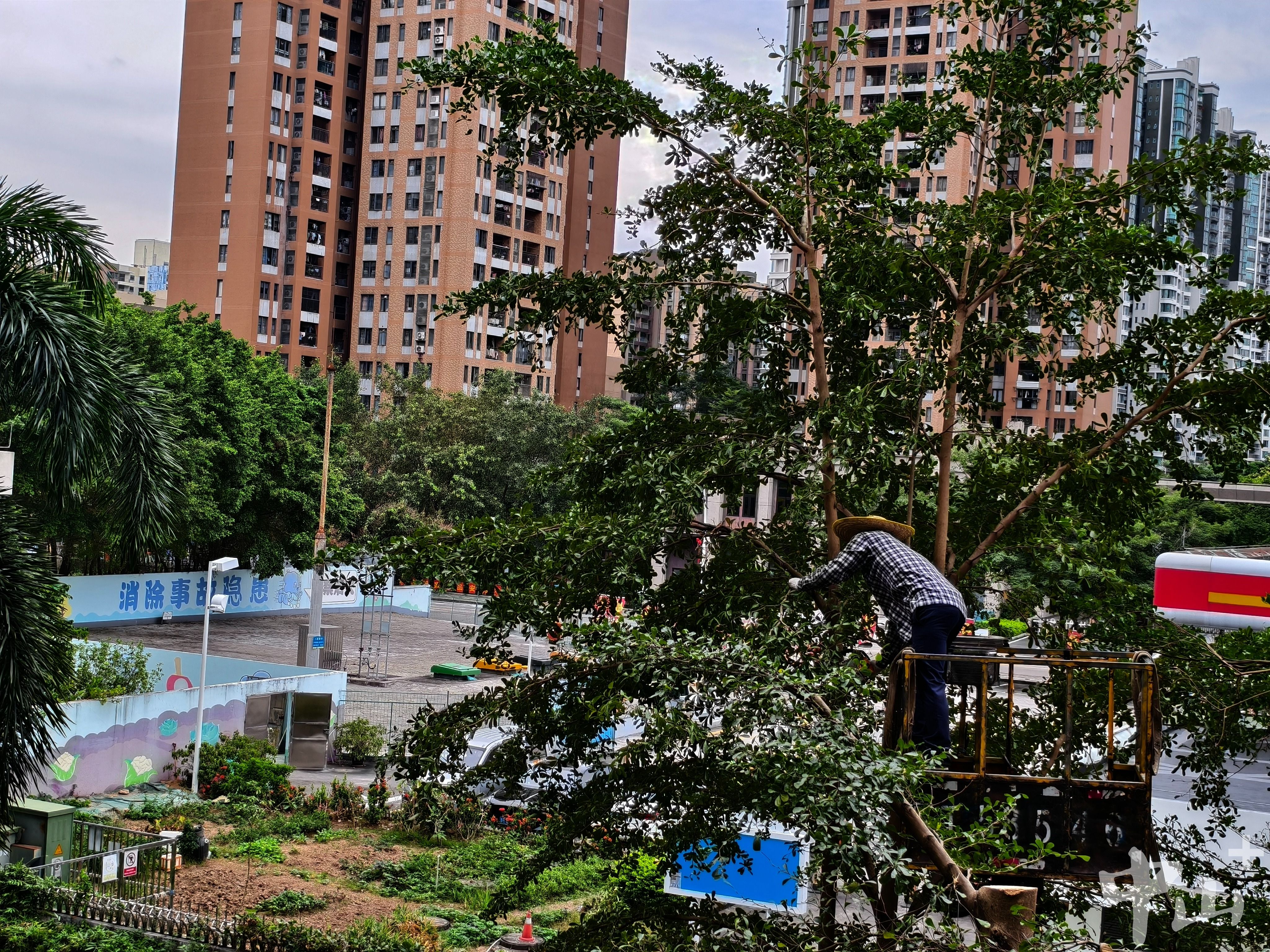 回想起11月11日當(dāng)天的情景,歐寶齡記憶猶新。當(dāng)天,星匯云錦小區(qū)物業(yè)服務(wù)中心經(jīng)過周密準(zhǔn)備,調(diào)來了高空作業(yè)車、叉車和運(yùn)輸卡車,對小區(qū)內(nèi)影響居民生活的樹木進(jìn)行了集中修剪。作業(yè)現(xiàn)場,兩位經(jīng)驗(yàn)豐富的園林師傅手持汽油鋸緊密配合,一位升空精準(zhǔn)操作,鋸斷橫生的枝干;另一位在地面熟練地將落下的樹干、樹枝進(jìn)行截?cái)嗵幚?。相?yīng)的樓棟管家與多名物業(yè)工作人員全程協(xié)同,與叉車司機(jī)一起,將修剪下的樹木枝干迅速搬運(yùn)上車,即時(shí)清運(yùn),清潔人員隨即跟進(jìn)清掃。整個(gè)過程銜接流暢、一氣呵成。