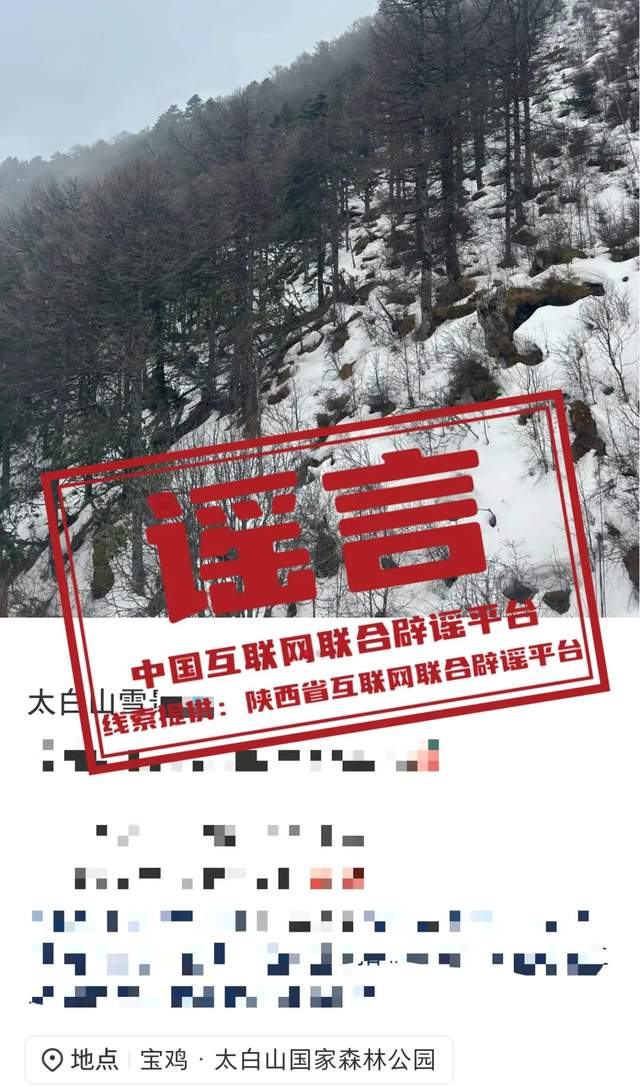 真相:近日,有網(wǎng)民發(fā)帖稱“陜西太白山迎來今秋第一場大雪”,并曬出視頻畫面,山林間白雪紛飛,屋檐上覆蓋著薄雪。相關(guān)視頻引發(fā)關(guān)注,有網(wǎng)民表示立即前往景區(qū)賞雪。對此,景區(qū)工作人員回應(yīng)稱,網(wǎng)傳視頻為往年下雪場景,目前太白山正在下大雨,景區(qū)已經(jīng)關(guān)閉。提醒游客出行前應(yīng)關(guān)注景區(qū)的實時公告與天氣情況,以免受虛假信息誤導(dǎo)。(來源:陜西省互聯(lián)網(wǎng)聯(lián)合辟謠平臺、@上游新聞)